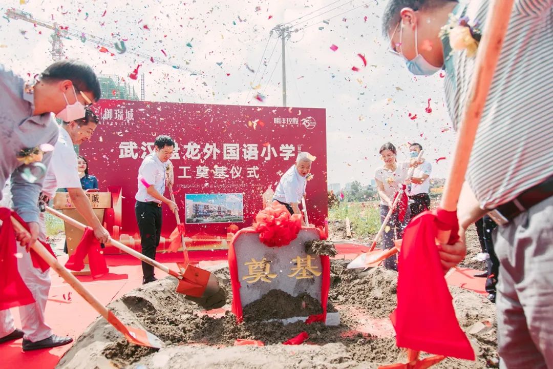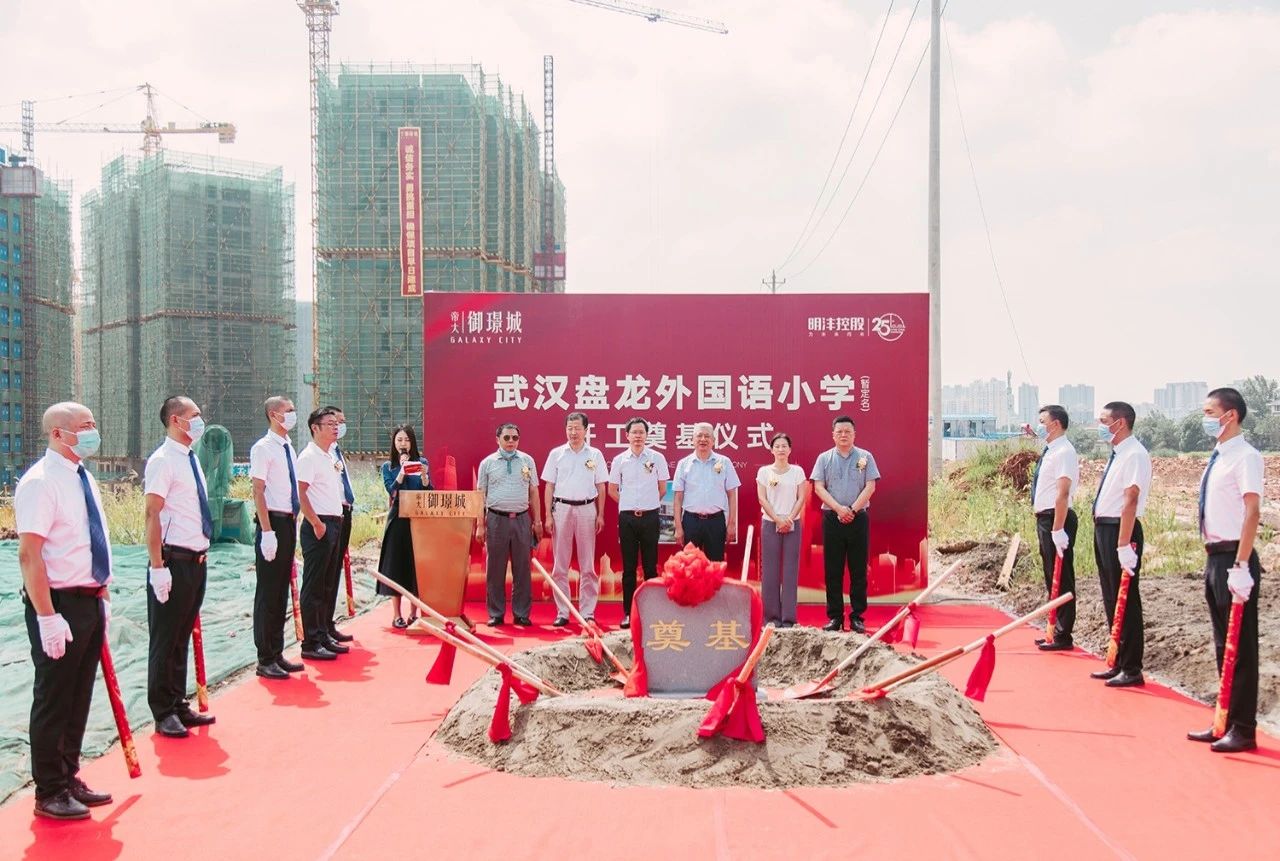 6月30日上午,武漢盤龍外國語小學舉行開工奠基儀式。黃陂區教育局代表、武漢盤龍城經濟開發區管委會代表、建設單位明灃云力控股集團有限公司(以下簡稱明灃控股)代表、監理單位代表、施工單位代表等出席儀式。